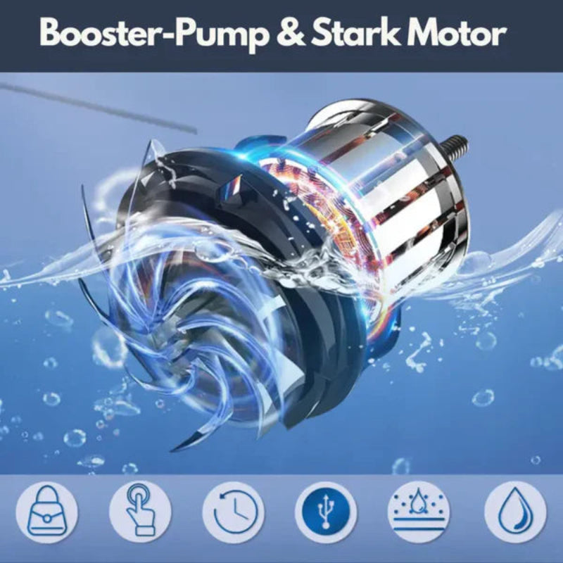 Tato přenosná sprcha je vybavena dobíjecí baterií a může fungovat bez elektřiny, jakmile je nabitá.