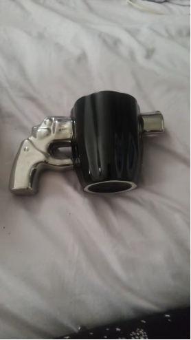 Non, à cause des finitions métalliques, il est déconseillé d'utiliser cette tasse au micro-ondes.